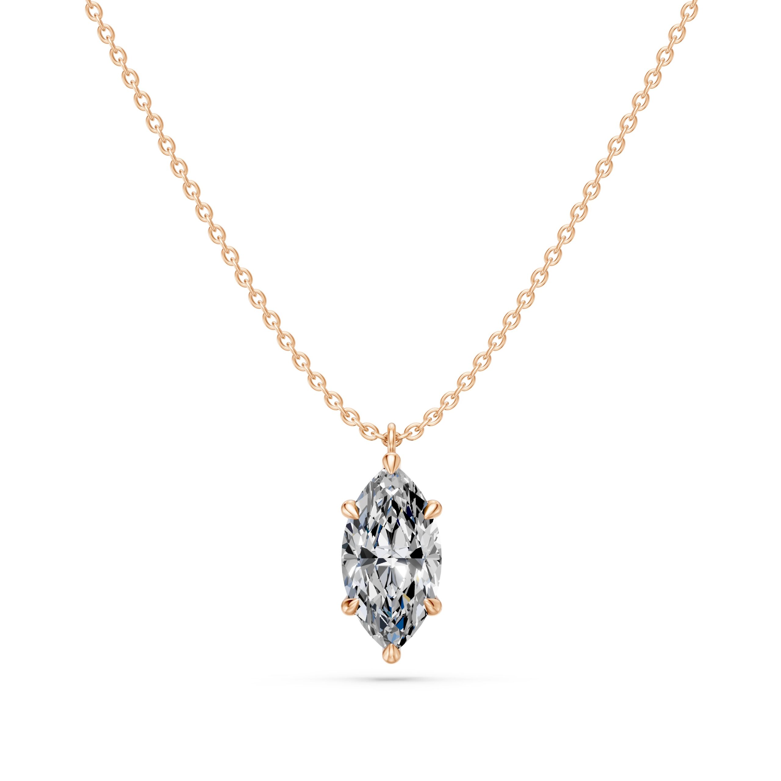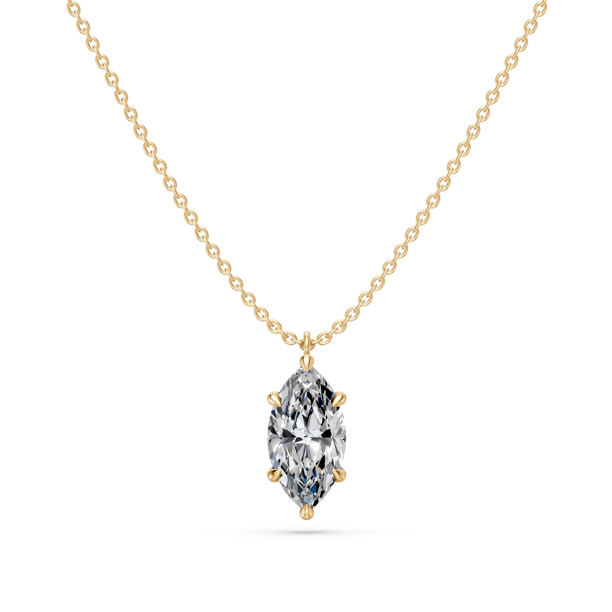 שרשרת סוליטר עם תליון יהלום בחיתוך מרקיזה 1 קראט תלוי לאורך