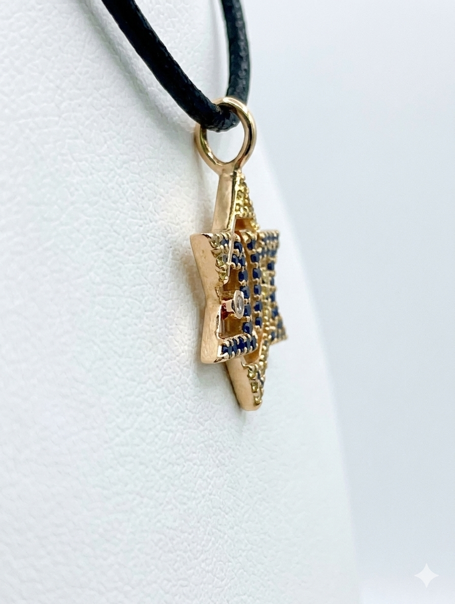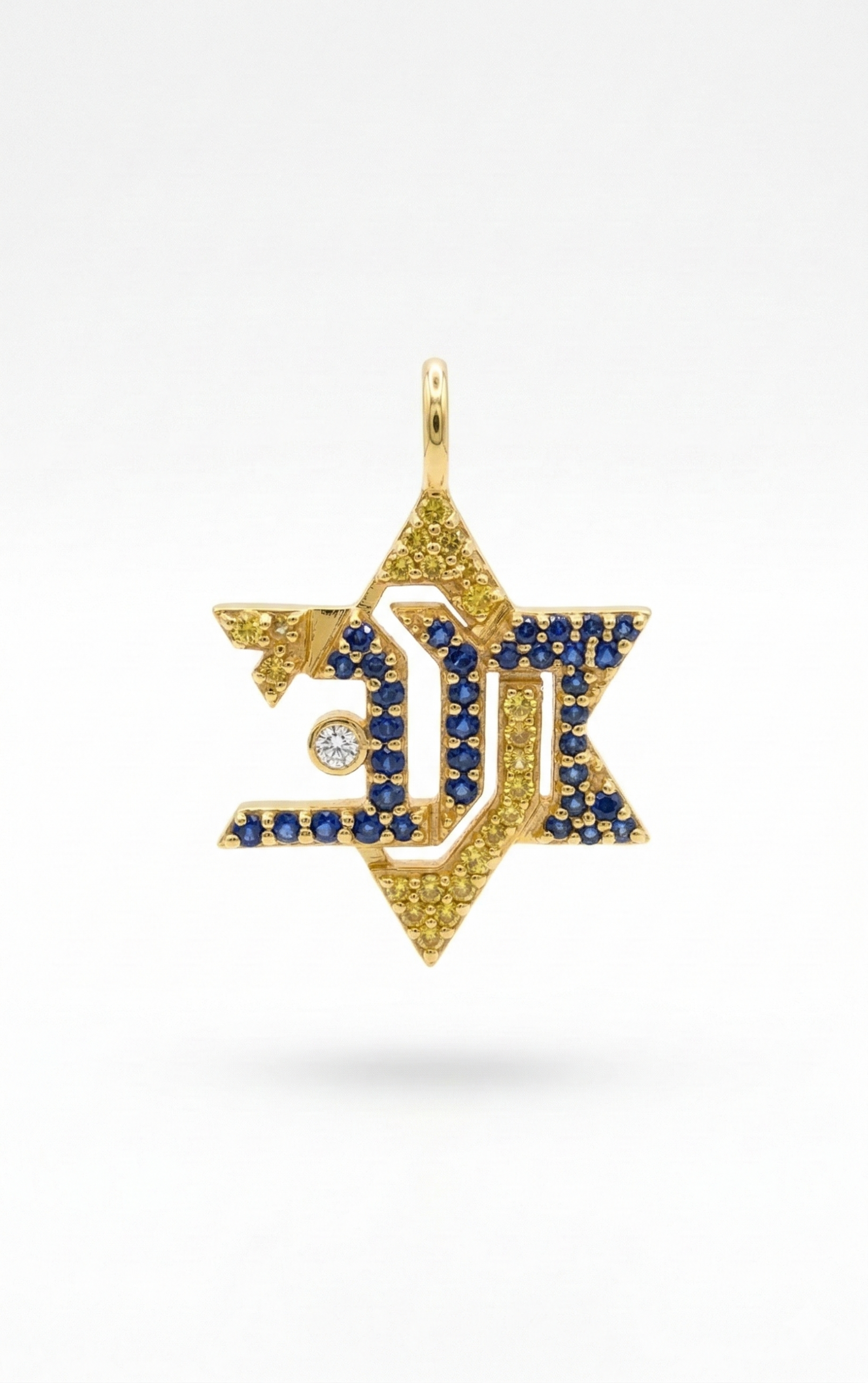 משובץ באבני חן ספיר דיפיוז'ן וספיר צהוב